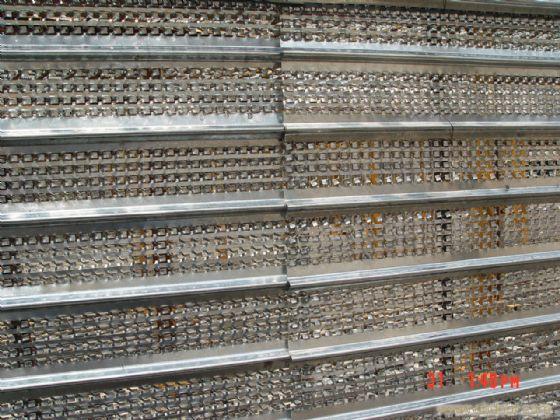 收口网又名免拆模板网是作为消耗性模板来固定的。当混凝土在模板后面浇注时,网眼上的余角片就嵌在混凝土里,形成一个与邻近浇注块相连的机械式楔。接缝的质量受到严格控制。其粘接及剪切方面的强度可与经过良好处理的粗琢缝合相媲美。二次浇注时可免去打孔、拉毛等工序可缩短施工周期,同时增加了浇注体的强度。